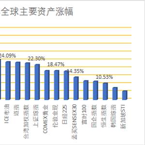 2019年以来港股涨10.53%,处于全球股市涨幅末尾。2019年A股走势凌厉,深证成指大涨44%,位列全球主要股指第二名;创业板综合指数涨38.7%,位列第三;美股涨势依旧强势,纳指涨36.27%,标普涨近30%,道指涨23.74%。台湾加权指数涨23.33%,沪指涨22.3%。其他大类资产方面,ICE布油涨24%,黄金涨18.5%。(数据以2018年12月31日收盘价开始,以2019年12月31日收盘价截止)