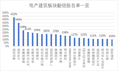 2019年,地产建筑股,尤其物业股涨势喜人,物业股6只股票实现翻倍,分别是新城悦服务、永升生活服务、佳兆业美好、碧桂园服务、中海物业、雅生活服务。