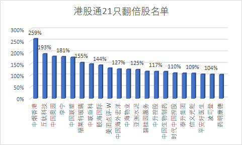 港股通有21只翻倍股,但也暴雷不断