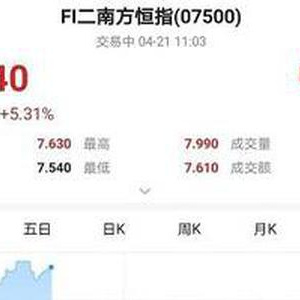 新浪港股讯,港股午后跌幅再次扩大至近千点,逆向ETF受捧,FI二南方恒指(07500)现价上升7.89%,报7.93元;成交约1.42亿股,涉资11.15亿元。