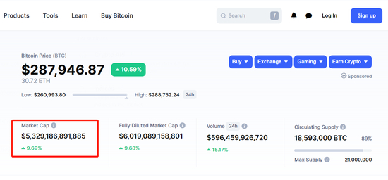 根据比特币实时数据,比特币总市值5.33万亿港元,超越阿里市值,仅次于腾讯的市值,目前腾讯市值5.57万亿港元。
