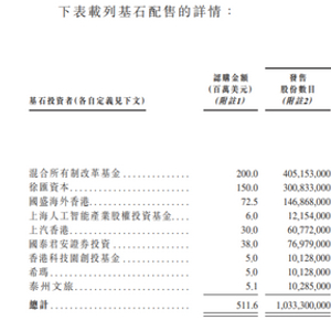 此前,公司引入9名基石投资者,基石投资者分别是中国诚通发起设立的混合所有制改革基金、国盛海外香港、上海人工智能产业股权投资基金、上汽香港、广发基金、Pleiad基金、WT、Focustar及Hel Ved。