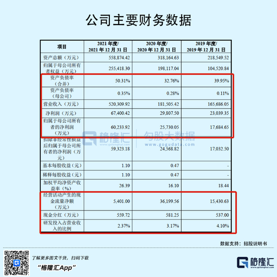 受益于行业景气度,瑞泰新材的业绩呈现良好的增长态势。2019年-2021年,公司实现营收由16.57亿元增长至52.03亿元,年复合增长率为77.21%;相对应的归母净利润则由1.77亿元增长至6.02亿元,年复合增长率为84.55%。