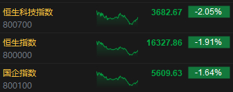 收评:港股恒指跌1.91% 恒生科指跌2.05%联想集团挫逾10%
