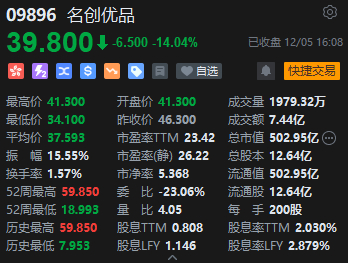 名创优品跌超14%。消息面上,据内媒报道,股价下跌的背后,是由于名创优品高管李敏信先后两次,合共减持180万股。市场也将股价下跌的矛头指向“门店扩张不及预期”。不过公司回应称今年四季度以来,公司各项业务经营正常且顺利,公司的财务状况稳健,没有发生任何重大不利变动。