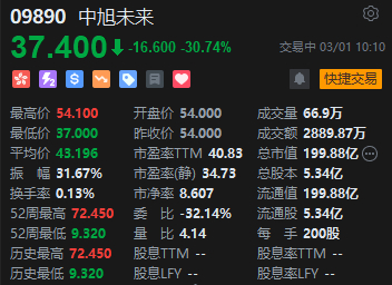 3月1日消息,中旭未来早盘狂泻30%,截至发稿,股价下跌30.74%,此前(2月16日)被宣布纳入恒生综合指数小型股,股价曾一路走高。