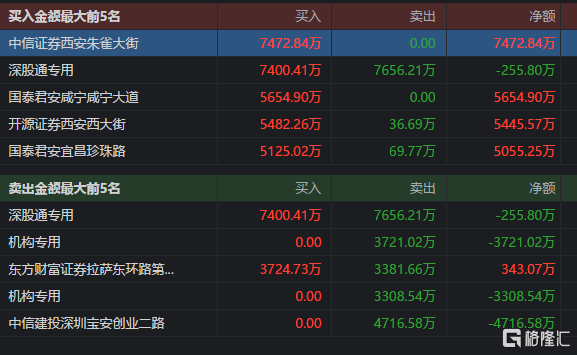 九安医疗获方新侠净买入7472万元,低位挖掘净买入1.07亿元,遭机构净卖出7029万元,深股通净卖出255万元。
