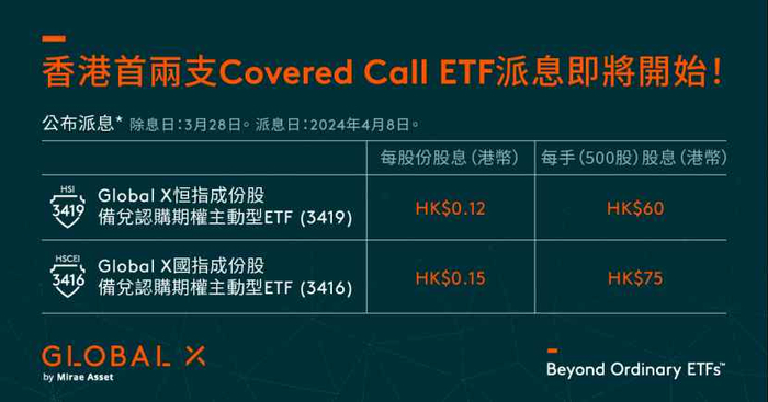 香港首两支Covered Call ETF将于4月8日派息