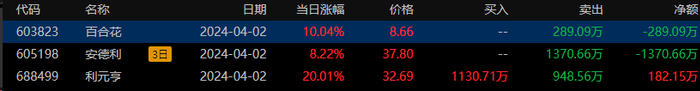 在龙虎榜中,涉及沪股通专用席位的个股有1只,百合花的沪股通专用席位净卖出额最大,净卖出289.09万元。