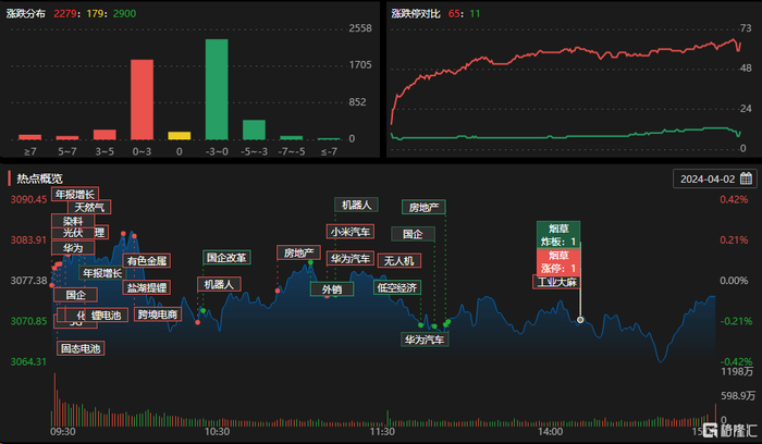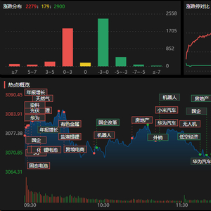 钛白粉概念强势大涨,固态电池、刀片电池板块持续活跃,风电设备板块走高,钠离子电池、化学原料及有机硅等板块涨幅居前。AI语料、Kimi概念及Sora等板块下挫,CPO、混合现实板块走弱,数字阅读、多模态AI及文化传媒等板块跌幅居前。