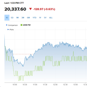 芯片代工巨头台积电早盘一度下跌1.4%,现跌1.06%;苹果供应商富士康下跌超过2%,平板制造商友光电的股价下跌1.7%。