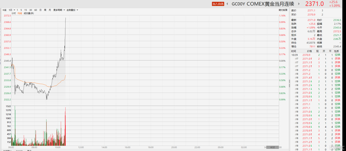 4月8日,现货黄金短线上涨16美元,报2343.5美元/盎司续创新高;COMEX期金日内涨幅超1%,现报2371美元/盎司。