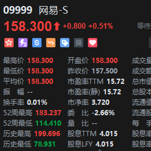 4月10日消息,网易早间高开0.51%,报158.3港元,成交额2684.77万港元,总市值5104.08亿港元。