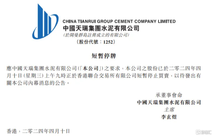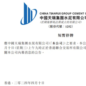据财联社报道,天瑞水泥香港办的知情人士表示:“公司董秘等相关负责人都在处理此事,公司目前经营正常。”