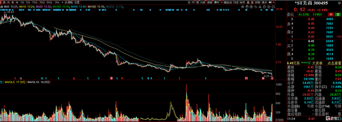 上周更是加速暴跌,周跌超55%,也是美尚生态历史上跌幅最大的一个周,但是这个跌幅与其从最高点跌下来的幅度相比,已是小场面了,巅峰是2016年美尚生态的股价最高达到24.92元/股,如今股价跌至0.42/股,从最高点跌去98.6%,相当于连续5周每周都下跌55%,截至发稿,年内跌幅超71%,位居年内跌幅榜第5!