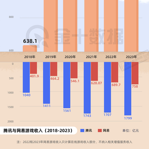 近期各游戏公司2023年财报陆续公布。虽然去年《蛋仔派对》《逆水寒手游》表现亮眼,但网易与腾讯的游戏收入差距不降反升。2023年,网易游戏收入为758亿元,腾讯游戏收入1799亿元,二者相差1041亿元,较2022年的1017.3亿元扩大23.7亿元。这主要是因为网易头部游戏老化,端游收入下降以及海外增长停滞。自2020年起,腾讯游戏与网易游戏的收入差距连续四年超过千亿元。