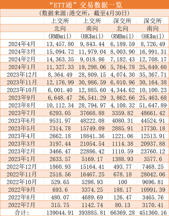 若从开通以来的整体数据看,ETF通的“南向”和“北向”的成交金额都比较多。“北向”合计成交额度达到2054.14亿元人民币,而“南向”更是达到8452.46亿港元。