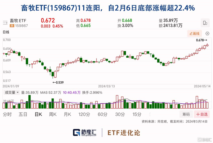 总结下来,就是反转的大方向正在形成,低吸、分步建仓,是押注这一波猪周期反转的正确姿势。看好本轮猪周期的投资者,不妨研究下畜牧ETF(159867)。