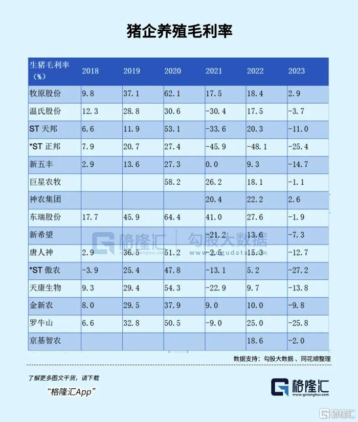 至于其他行业切入养猪的,比如地产商、制造业、服务业,基本都是一时兴起,不会有太大的持续性,实际上它们中的大多数,已经退出养猪行业,可以忽略了。而那些已经被“ST”的,秉着稳健投资的原则,可以直接规避。