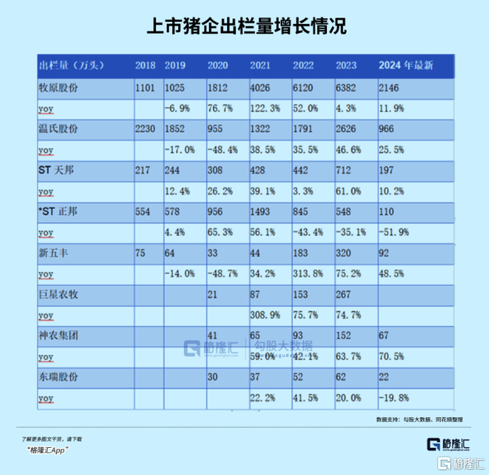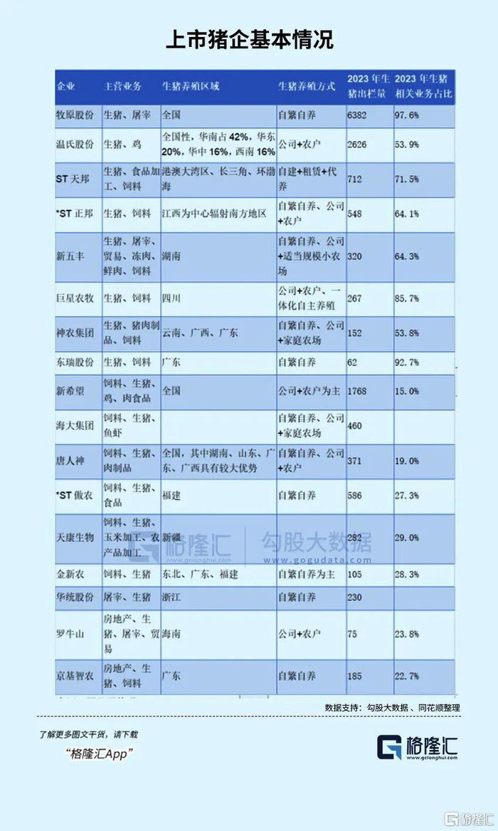 下面这个图所列出了上市猪企的基本情况。