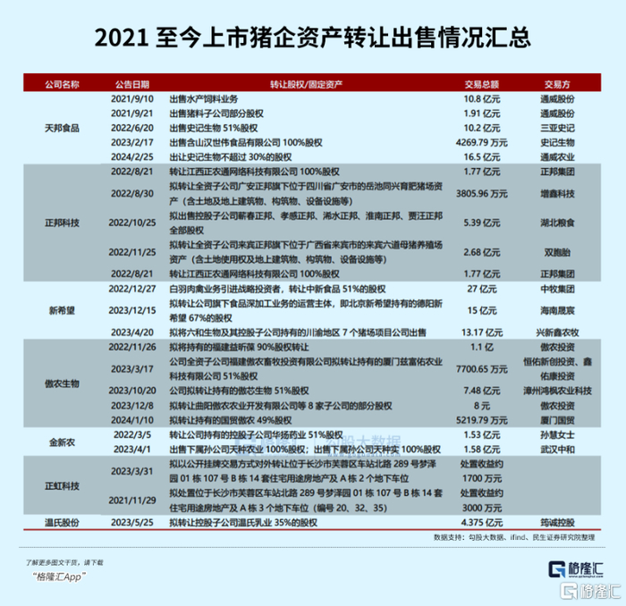 过去一年整体行业亏损已经是事实,财务情况比较差的公司,陆续爆出变卖资产、濒临破产的困局。靠增加应付账款改善经营现金流的做法也无法持续,于是陆续有有猪企选择转让资产。