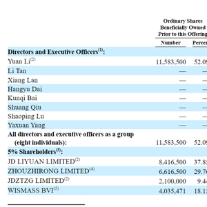 股权结构方面,本次发行前,李源通过JD LIYUAN LIMITED持股37.85%,总计持股52.09%。作为课标科技创始人,李源现年33岁,拥有超过10年的企业管理经验。自2020年4月公司成立以来,李源一直担任公司的首席执行官,负责管理日常运营和高层战略和业务规划。