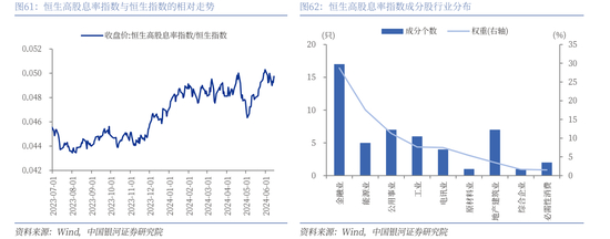 高股息资产:自2023年下半年,恒生高股息率指数整体跑赢恒生指数。2024年以来,截至6月14日恒生高股息率指数累计上涨10.87%,恒生指数涨幅为5.21%。从恒生高股息率指数的成分股来看,权重主要集中在金融业、能源业、公用事业、工业、电讯业等板块。恒生一级行业中,截至2023年12月31日,多数行业的股息率(近12个月)处于历史高位水平,其中,能源业股息率达10.90%,综合企业、电讯业、工业、金融业股息率也较高。