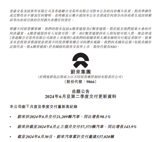 注:蔚来的公告