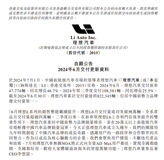 注:理想汽车的公告