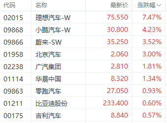 新势力上月销量提振汽车股走势 理想汽车涨超7%