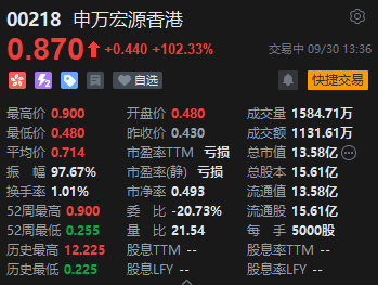 港股券商股持续拉升!申万宏源香港股价翻倍