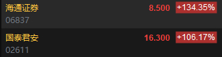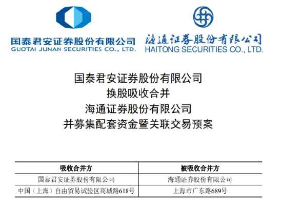 券商巨头合并预案落地!港股国泰君安高开106.17%、海通证券高开134.35%