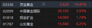 港股黄金股集体走高 灵宝黄金大涨超19%
