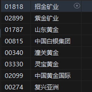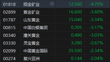 11月6日消息,港股黄金股集体走低,招金矿业跌近5%,紫金矿业、山东黄金、中国白银集团跌超3%。