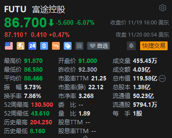 网传富途年底裁员40%-60%无年终 Q3营利双增股价不涨反跌6.07%