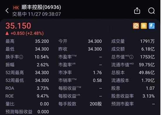 今天,顺丰控股登陆港股,截至发稿前市值1753亿港元。
