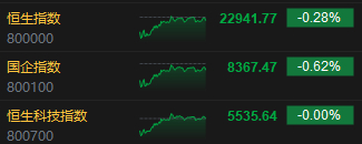 收评:港股恒指跌0.28% 国企指数跌0.62% 优必选涨逾10%