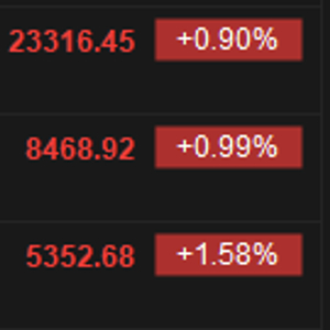 今日港股三大指数集体高开,恒生指数涨0.90%,报23316.45点,恒生科指涨1.58%,国企指数涨0.99%。盘面上,科网股普遍上涨,京东集团涨超4%,百度集团、哔哩哔哩、美团、阿里巴巴等涨超1%;机器人概念股普遍高开,优必选涨超2%;生物医药股普涨,诺诚健华高开近10%;汽车股普涨,蔚来涨超2%。