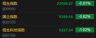 今日港股三大指数集体低开,恒生指数跌0.81%,报23156.27点,恒生科指跌1.02%,国企指数跌0.82%。盘面上,科网股普遍下跌,阿里巴巴跌超2%,百度集团、美团、小米集团、京东集团跌超1%;黄金股普涨,赤峰黄金涨超2%;生物医药股分化,再鼎医药涨超4%。