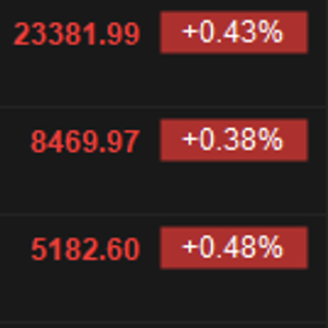 5月27日消息,港股三大指数震荡走高,截至收盘,恒生指数涨0.43%,报23381.99点,恒生科技指数涨0.48%,国企指数涨0.38%。盘面上,科网股普涨,美团涨超2%,网易涨超1%,京东集团跌1%;CXO概念股齐涨,维亚生物涨超12%;啤酒股集体上涨,青岛啤酒股份涨近4%;茶饮股走强,蜜雪集团涨近10%。