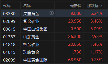 黄金股回暖,灵宝黄金涨超6%。据银行业巨头摩根士丹利、高盛和瑞银集团的最新报告,在特朗普政府最近宣布对欧盟和其他主要贸易伙伴加征关税后,黄金是投资者最好的去处之一。