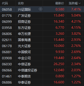 中资券商股活跃,兴证国际涨超7%。国泰海通表示,未来将有更多香港券商布局虚拟资产业务。华泰证券指出,权益市场在“持续稳定和活跃资本市场”的基调下有支撑,7月以来交投延续高景气度,香港IPO市场持续回暖,为券商营造良好经营环境。当前板块低估低配,把握券商股修复机会。
