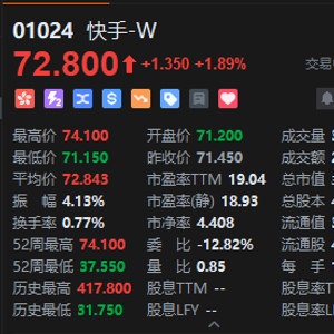 快手7月股价涨幅超14% 汇丰上调目标价至82港元 看好AI价值释放