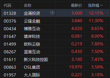 加密货币概念股涨幅居前,金涌投资涨超12%。加密货币市场迎来大涨, 比特币24小时内涨近5%,一度升破9.6万美元创年内新高,现站稳9.5万美元关口。 以太坊站上3300美元。