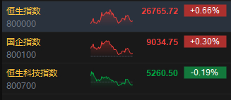 港股收评:恒指涨0.66% 科指跌0.19% 科网股涨跌互现 内房股活跃 半导体板块走低