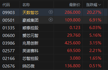 港股收评:恒指跌1.44% 科指跌2.87%创阶段新低 科网股跌多涨少 半导体板块部分上涨 天数智芯涨超20%刷新高