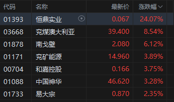 港股收评:恒指跌1.35% 科指跌0.12% 科网股、航空股普跌 煤炭股逆势上涨