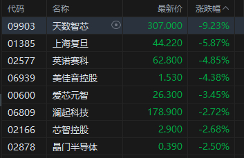 半导体板块高开低走,天数智芯跌超9%。目前,包括高盛在内的投行一致认为,存储芯片的供需矛盾将持续至2027年,涨价潮已汹涌而来。存储成本的飙升直接传导至手机行业,价格上涨已不可避免,小米总裁卢伟冰就透露,“小米17 Ultra一定会涨价,涨得还会有点多。”
