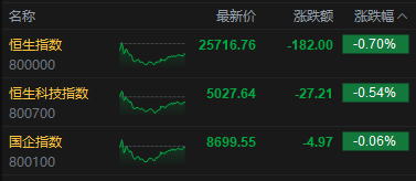 港股收评:恒指跌0.7% 科指跌0.54% 科网股普跌 证券及经纪板块走弱 煤炭股强势 国泰君安国际跌超4%