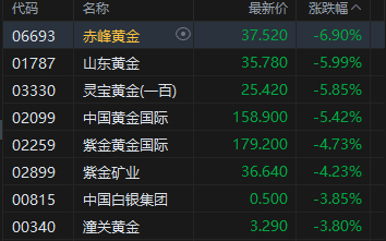黄金股下挫,赤峰黄金跌超6%。伊朗冲突爆发两周以来,黄金价格不涨反跌,较开战前累计下跌约6%。摩根大通对此表示,黄金在市场压力骤升初期被“一并抛售”,是有据可查的历史规律,而非避险功能失效的信号。该机构续指,本轮黄金抛售由多重因素叠加驱动:能源价格飙升推高通胀预期,促使市场大幅压低对美联储降息的预期,叠加美元急速反弹,形成近期的直接利空背景。